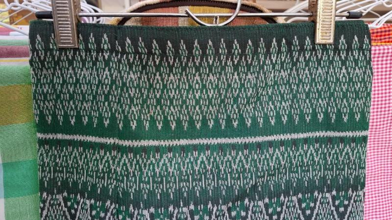 ผ้าซิ่น แก้วตาผ้าไทย ลายไทยโบราณ ผ้าไหม สีเขียว ทำจากผ้าไหมย้อมธรรมชาติ